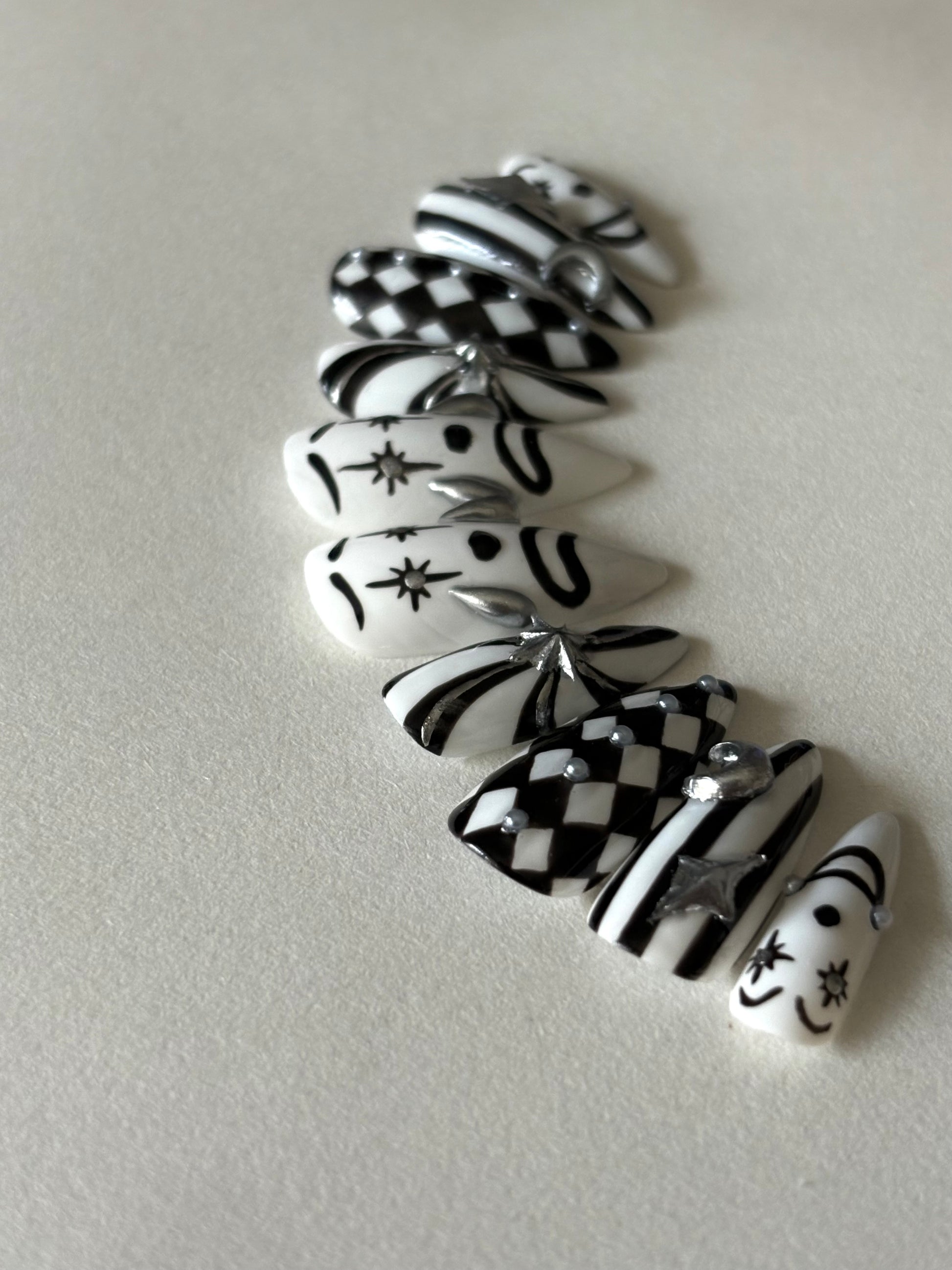 If you'd like a custom size please leave your measurements in millimeters in the "Special Instructions" box in the cart before checkout - in this order: Thumb, Index, Middle, Ring, Pinky. Example: